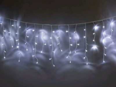 115 Электрогирлянда уличная "Сосульки" 100 бел LED огней, бел провод, с кон-ром, 20 нитей, 3,5м (отдел елочная игрушка, подвеска на елку)