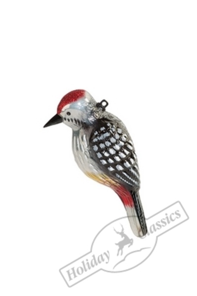 109 Дятел лесной с серебристо-графитовым оперением 5х12,7см стекло 141173 (отдел елочная игрушка, подвеска на елку)