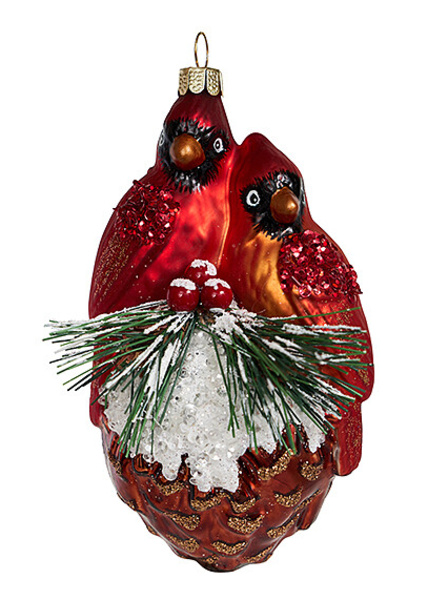 1106 Птицы на шишке (стекло) 7,5х7х12,5см 251292 (отдел елочная игрушка, подвеска на елку)