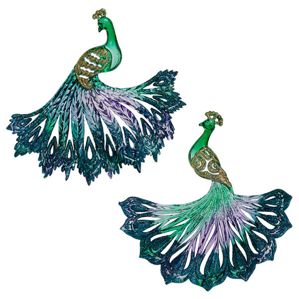 1207 Павлин сине-зелено-фиолетовый ассортимент из 2-х 15х2х14/ 15х2х15см (отдел елочная игрушка, подвеска на елку)