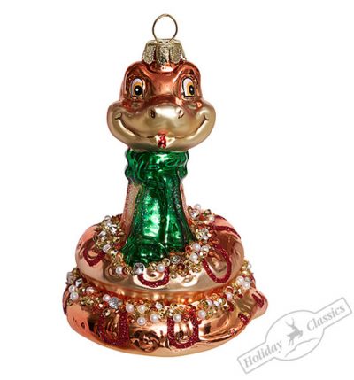 1155 Змея в шарфике бронзовая (стекло) 7,5х7х11,5см (отдел елочная игрушка, подвеска на елку)