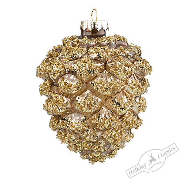 Количество товара 1300 Шишка с бисером золотая винтаж 7,8х9,7см стекло (отдел елочная игрушка, подвеска на елку)