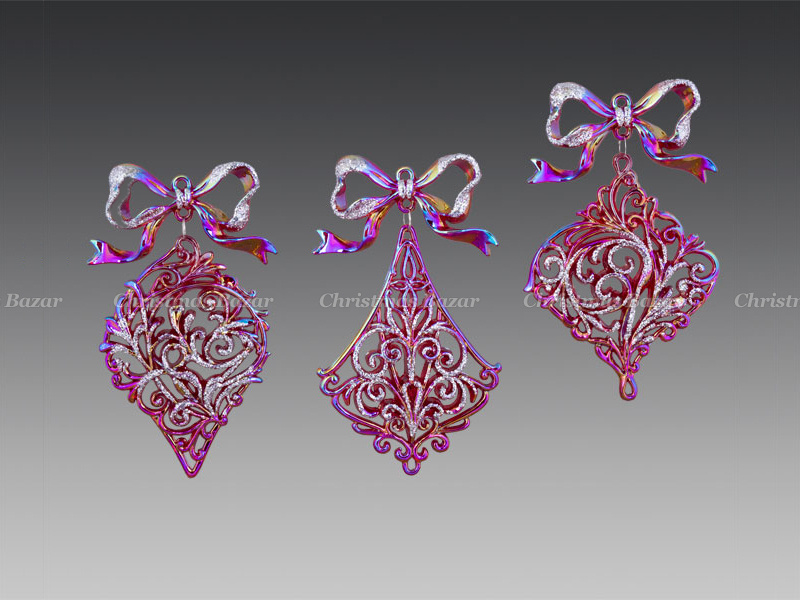 1301CR Капля ажурная с бантом лилово-серебряная голографическая, асс. из 3-х, 7,5х12 см (отдел елочная игрушка, подвеска на елку)