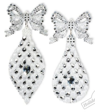 1408 Капля "Роскошь Востока" бело-серебряная блестящая асс. из 2-х 7х17см (отдел елочная игрушка, подвеска на елку)