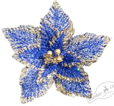 121 Пуансеттия "Паутинка" синяя с золотыми пайетками d 30х15см (отдел елочная игрушка, подвеска на елку)