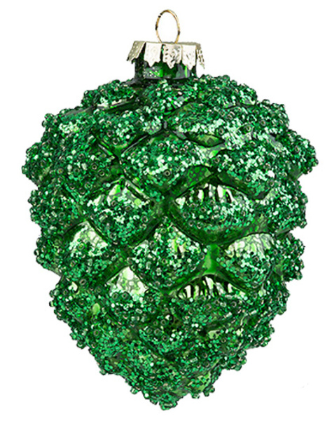 1305 Шишка с бисером изумрудная винтаж 7,8х9,7см стекло 178872 (отдел елочная игрушка, подвеска на елку)