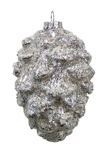 1404 Шишка серебристая (стекло) 8х12,5см 214228 (отдел елочная игрушка, подвеска на елку)