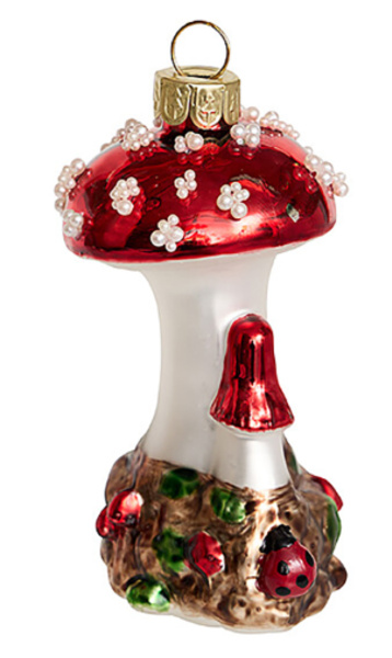 132 Грибочки на полянке (стекло) 6х6х10см (отдел елочная игрушка, подвеска на елку)