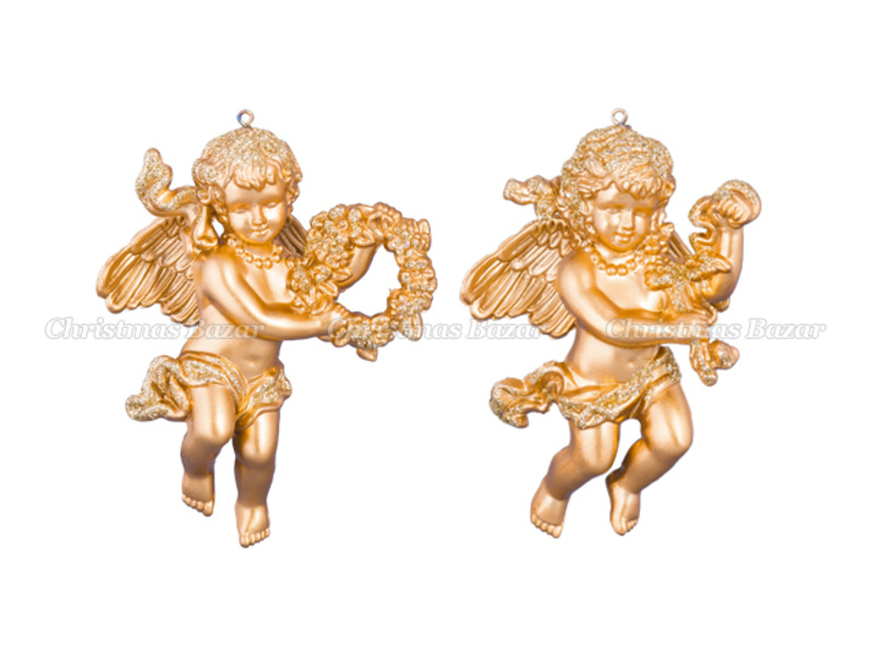 1608G Херувим рождественский матовый золотой с музыкальными инструментами, асс. из 2-х, 6,5х10 см (отдел елочная игрушка, подвеска на елку)