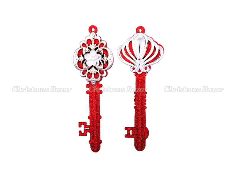 16099R Ключ «Барокко» красный искристый с графитовыми узорами и стразами, асс. из 2-х, 4х13 см DM (отдел елочная игрушка, подвеска на елку)