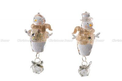 1708CG Снеговичок с подарком и с золотистым декором прозрачно-хрустальные, асс. из 2-х 5,5х12 см (отдел елочная игрушка, подвеска на елку)