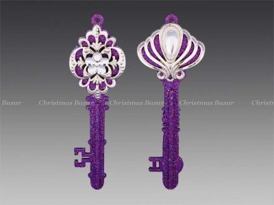 16099P Ключ "Барокко" фиолетовый искристый с графитовыми узорами и стразами, асс. из 2-х, 4х13 см (отдел елочная игрушка, подвеска на елку)