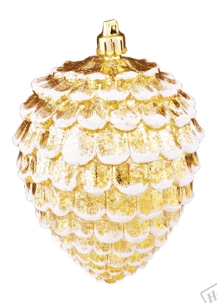 17100 Шишка золотая заснеженная винтажная, 13см (отдел елочная игрушка, подвеска на елку)
