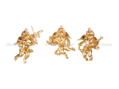 1701MG Херувим с музыкальными инструментами золотой матовый, асс. из 3-х 5,5х8см (отдел елочная игрушка, подвеска на елку)