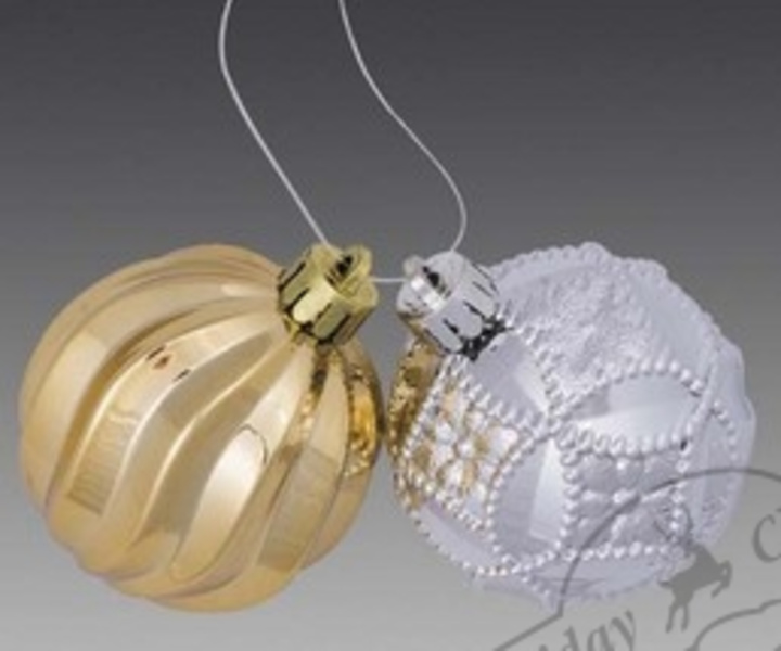 Количество товара 172612 Гроздь из 2-х фигурных шаров: серебряные цветочные ромбы/золотой волнистый, 6см (отдел елочная игрушка, подвеска на елку)