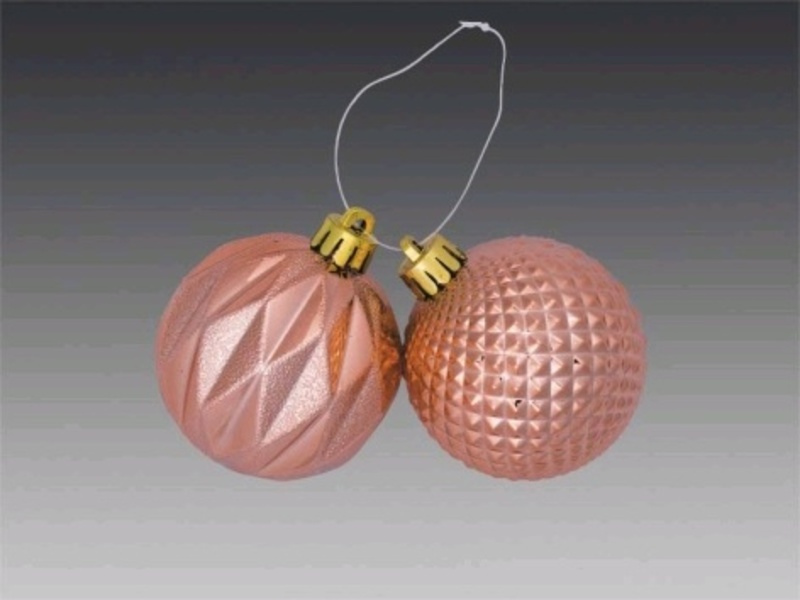 Количество товара 172622 Гроздь из 2-х фигурных шаров "Розовое золото", 6 см (отдел елочная игрушка, подвеска на елку)