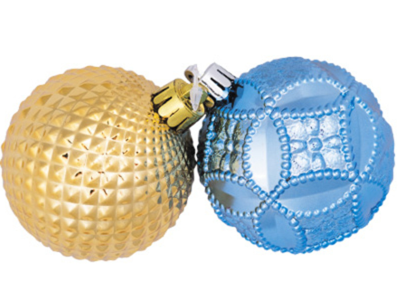 Количество товара 172624 Гроздь из 2-х фигурных шаров: голубые цветочные ромбы/золотой, 6см (отдел елочная игрушка, подвеска на елку)