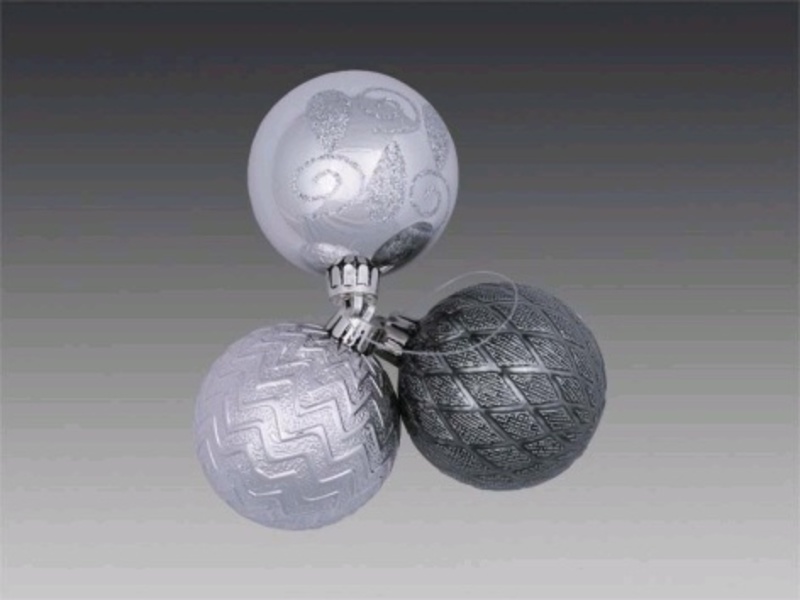 Количество товара 173639 Гроздь из 3-х фигурных шаров "Серебряные вершины": графитовый/2 серебряных, 6см (отдел елочная игрушка, подвеска на елку)