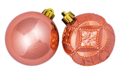 172621 Гроздь из 2-х шаров розовое золото: цветочные ромбы/блестящий, 6 см PL (отдел елочная игрушка, подвеска на елку)