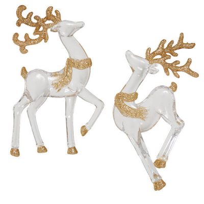 2107 Олень 3D прозрачно-серебряный с шарфиком ассортимент из 2-х 8,5х1,5х15/ 9х1,5х14,5см (отдел елочная игрушка, подвеска на елку)