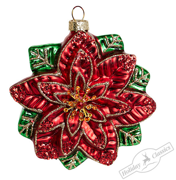 213 Пуансеттия красная с листочками (стекло) 10х5х10см (отдел елочная игрушка, подвеска на елку)