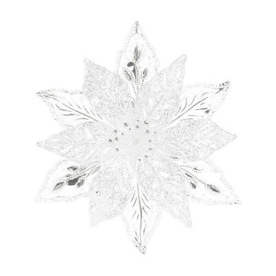 2116 Пуансеттия прозрачная со снежным и серебряным декором11,8х2х13см (отдел елочная игрушка, подвеска на елку)