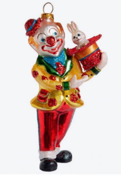 23023-1 Клоун с кроликом в шляпе (стекло) 7,5х5,5х14,5см 230236 (отдел елочная игрушка, подвеска на елку)