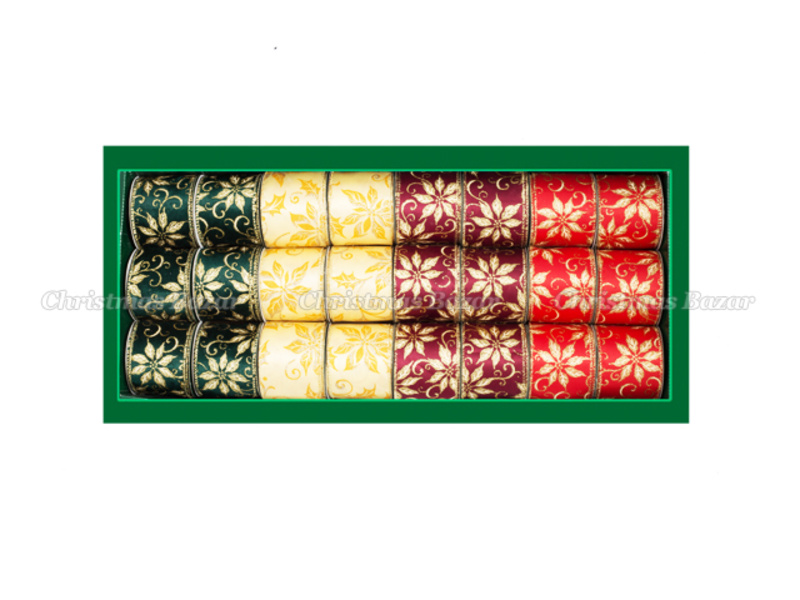 230 Лента для декорирования «Золотая пуансеттия» красная/золотая/бордо/зеленая 5мх6,5см R230 (отдел елочная игрушка, подвеска на елку)