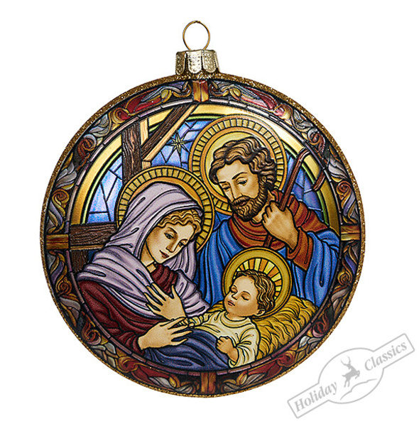 243300 Медальон «Святое семейство» двусторонний (стекло) 10х1,5х10см (отдел елочная игрушка, подвеска на елку)