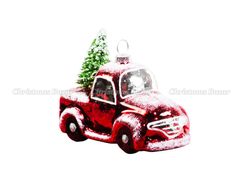 310GLD Грузовичок красный заснеженный с елочкой (стекло) 11х9см (отдел елочная игрушка, подвеска на елку)