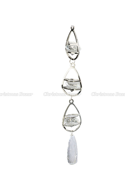 313 Подвеска "Хрустальная капель" серебряная 19 см (отдел елочная игрушка, подвеска на елку)