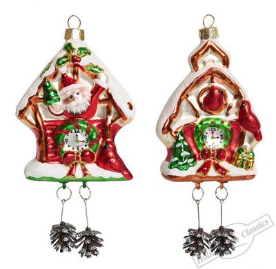 311201 Часы-ходики "Рождественские", асс. из 2-х (стекло) 7,5х3,5х17см (отдел елочная игрушка, подвеска на елку)