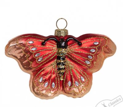 333 Бабочка Янтарница (стекло) 11х2,4х7см (отдел елочная игрушка, подвеска на елку)