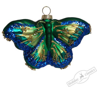 334 Бабочка Монарх изумрудная (стекло) 11,5х2,8х7см (отдел елочная игрушка, подвеска на елку)