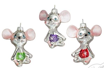 345 Крошки - мышки асс. из 3-х (стекло) 6,3х8см (отдел елочная игрушка, подвеска на елку)