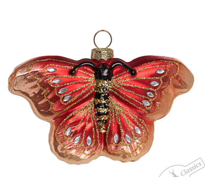 333 Бабочка Янтарница (стекло) 11х2,4х7см (отдел елочная игрушка, подвеска на елку)