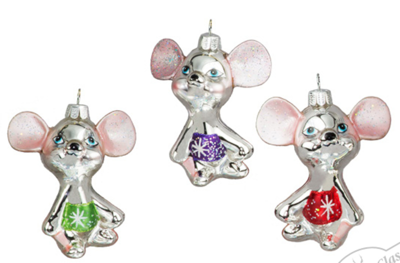 345 Крошки — мышки асс. из 3-х (стекло) 6,3х8см (отдел елочная игрушка, подвеска на елку)