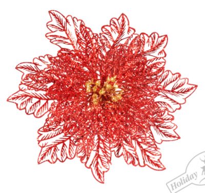 464 Пуансеттия двойная ажурная с золотыми тычинками красная блестящая на прищепке d=20см (отдел елочная игрушка, подвеска на елку)