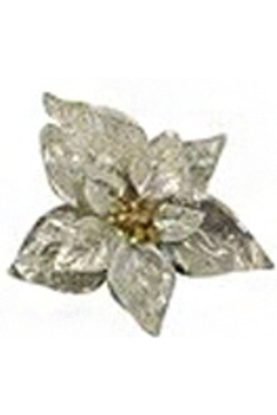 516 Пуансеттия "Муаровый узор" золотая на клипе d 20 см (отдел елочная игрушка, подвеска на елку)
