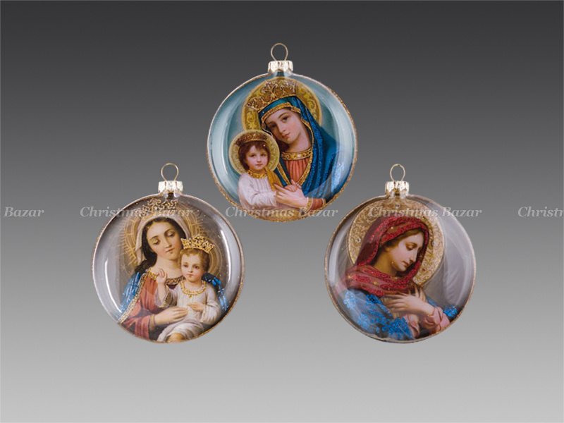 63519-0-1 Медальон «Мадонна» двусторонний (стекло), асс. из 3-х, 8см (отдел елочная игрушка, подвеска на елку)