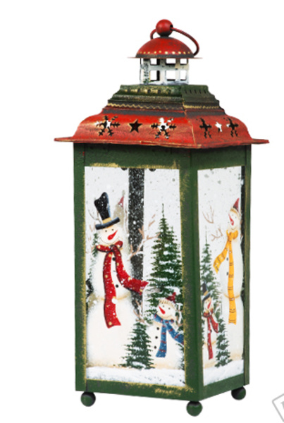66398 Фонарь рождественский зеленый с красной крышей высокий (металл/стекло) 12,7х12,7х30,5 см (отдел елочная игрушка, подвеска на елку)