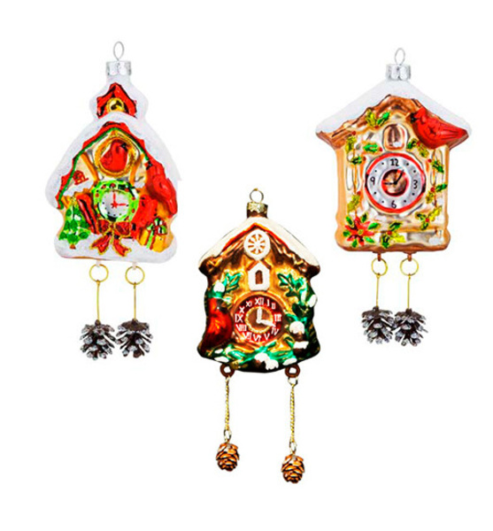 769 Часы-ходики «Сказочный лес», асс. из 3-х (стекло) 7,5х4,5х16см (отдел елочная игрушка, подвеска на елку)