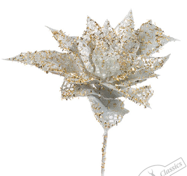 86352 Пуансеттия ажурная искристая серебряно-золотая, d 15см (отдел елочная игрушка, подвеска на елку)