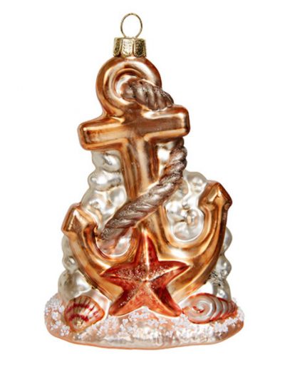 872 Якорь золотой (стекло) 8х6,5х12см (отдел елочная игрушка, подвеска на елку)