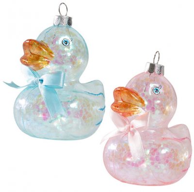 880 Уточка "Нежный возраст", асс. из 2-х (стекло) 6,5х7х8,5см (отдел елочная игрушка, подвеска на елку)