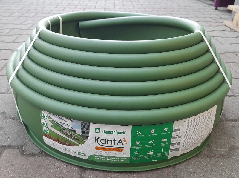 Бордюр 10 м, высота 15 см, KANTA PRO Б-1000.15.03-ПП пластиковый оливковый 82544-Ол