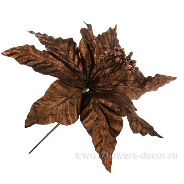 Цветок искусственный Пуансеттия ткань, пластик 27см Коричневый EYF19-1728