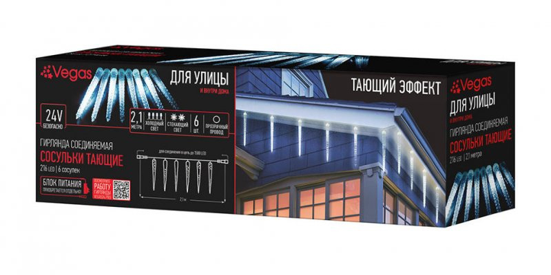 Количество товара Электрогирлянда конструктор "Сосульки тающие" 2,1 м (6 шт. 30 см), 216 холодных LED ламп, блок питания приобретается отдельно, 55111