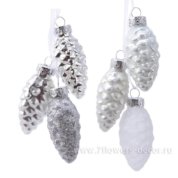 Елочная игрушка «Шишки в связке» стекло D2,5хH6см 3шт Белый-серебряный 121177