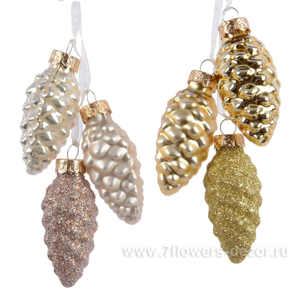 Елочная игрушка «Шишки в связке» стекло D3хН6см 3шт Жемчужно-золотые 121179